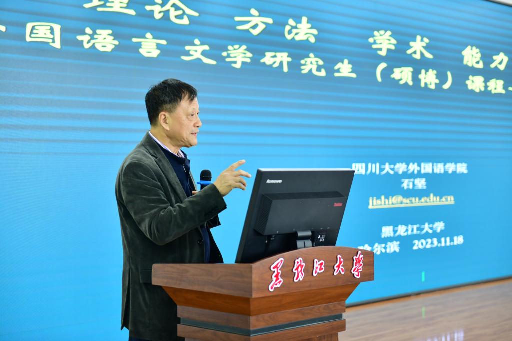 随后,四川大学原副董事长石坚教授致辞,他指出,面对当前外国语言文学人才培养现状,需培养出更多高层次高素质的研究生,才能顺应时代变化、助力外语学科发展。