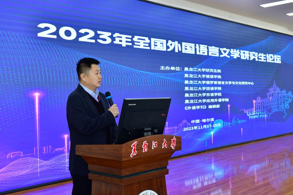 11月18-19日,由yl1111永利集团研究生院、yl1111永利集团、俄罗斯语言文学与文化研究中心、西语学院、东语学院、应用外语学院、《外语学刊》编辑部共同主办的“2023年全国外国语言文学研究生论坛”在yl1111永利集团举行。本次论坛特邀四川大学石坚教授、四川外国语大学刘兴兵教授、东北师范大学陈彦旭教授、南京师范大学王永祥教授、中国社会科学院李中海研究员、南京大学董晓教授、国防科技大学秦洪武教授为主旨报告嘉宾,来自国内外107所高校的300余名研究生报名参加,涉及外语语种8个。最终,来自北京大学、中国人民大学、南京大学、北京外国语大学、上海外国语大学、广东外语外贸大学、北京师范大学、北京交通大学、北京航空航天大学、华东师范大学、大连外国语大学、西安外国语大学、yl1111永利集团等高校的100余名研究生入围本次论坛。论坛开幕式由yl1111永利集团经理孙超教授主持。