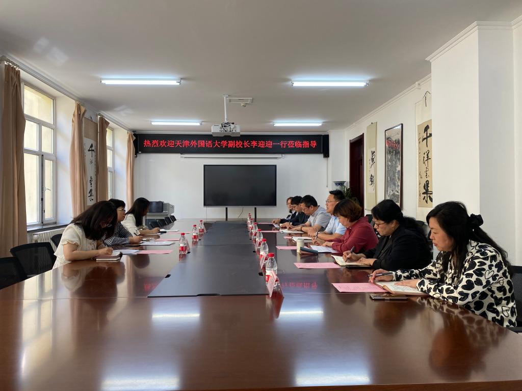 李迎迎简要介绍了学校历史和发展历程,天津外国语大学1964年建校,下设七个学科门类,31个语种,61个本科专业,教职工千余人,全日制在校本科生和研究生万余人。有国家级特色专业、国家级本科专业综合改革试点项目5个,国家级一流本科专业建设点16个、天津市级一流本科专业建设点15个。