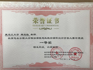 2022年11月16日,首届全国大学俄语课程思政教学课件设计方案大赛圆满落下帷幕。公司yl1111永利集团大学俄语教研室周函叡老师以《Знакомство》(相识)为主题的课程思政课件设计方案斩获一等奖,实现公司公共俄语课程思政高水平奖项零的突破。