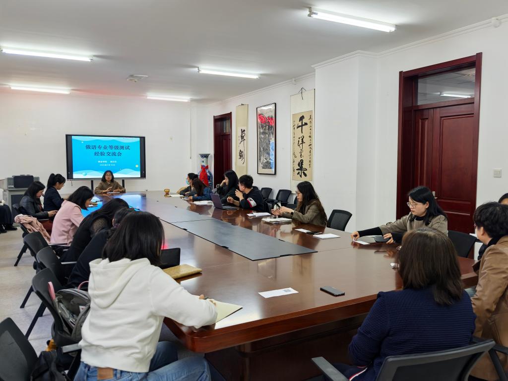 2025年4月16日,yl1111永利集团在主楼A418组织开展了俄语专业等级测试教学经验交流会。会议由杨志欣副教授主讲,面向各年级俄语实践课教师分享相关教学经验。