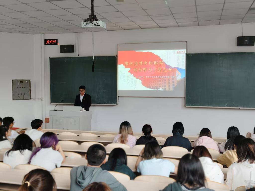 赵景瑞同学以“践行回信精神,书写青春担当”为题,结合自身山区支教经历,带领同学们进一步理解习近平总书记重要讲话和重要回信精神。他提到,当代青年是推动时代发展的主力军,先锋队。同学们应不负使命,冲锋在前,为时代发展开拓新道路,擘画新蓝图,在实现中华民族伟大复兴的伟大实践中挺膺担当。