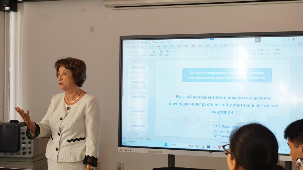 本次大师班的主讲人为奥莉加·科罗特科娃(Ольга Короткова),现任莫斯科国立罗蒙诺索夫大学语文系对外俄语教研室副教授,曾任深圳北理莫斯科大学俄语中心主任。主要研究领域为对比语言学、文化学、对外俄语教学法、现代交际礼仪。已出版专著、教材及发表学术论文共计80余部(篇),其中对外俄语教材28部,在国际学术会议上作报告60余次,荣获2010年俄罗斯联邦普希金奖章。