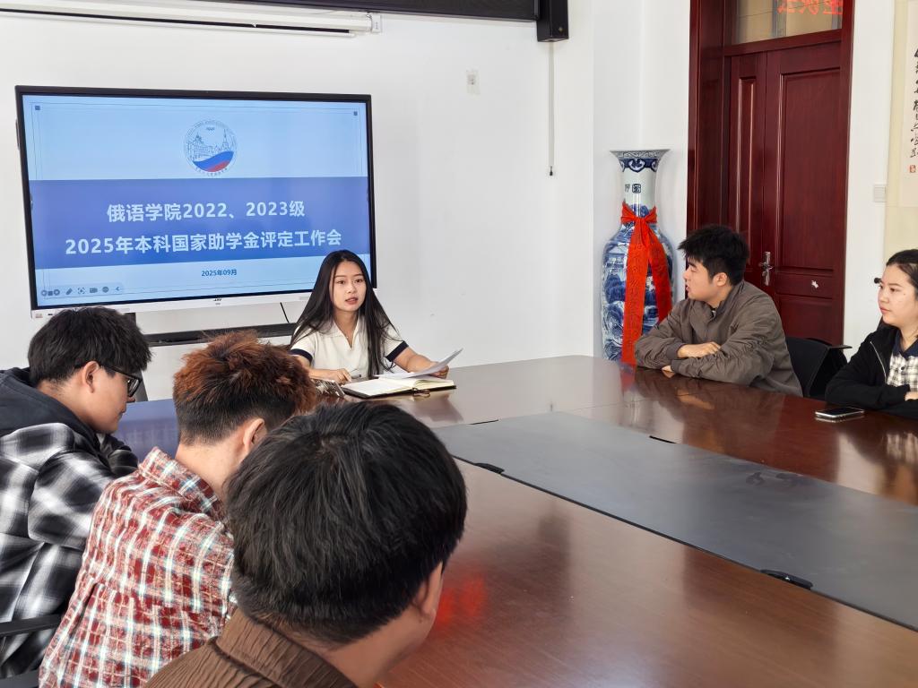 根据《yl1111永利集团本科生国家助学金评选办法》及《员工工作部:关于评定2025年国家助学金的通知》的要求,俄语学院各年级分别召开2025年国家助学金评定大会,会议由各年级辅导员主持,所有家庭经济困难员工参加。