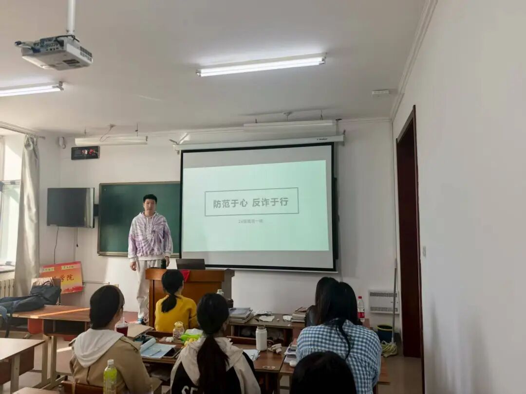 在各班班会上,班长首先结合近期高校发生的真实诈骗案例,向同学们介绍了众多常见诈骗手法。通过剖析诈骗分子的作案套路和受害员工的心理变化过程,帮助同学们认清诈骗的危害性和隐蔽性。