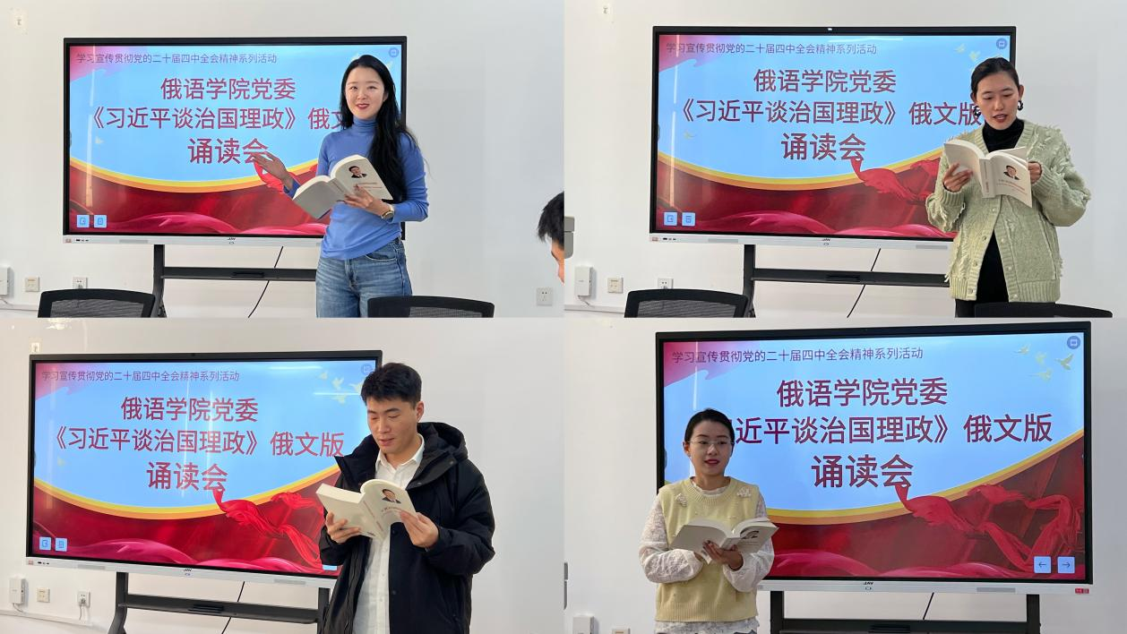 诵读会现场,参赛教师们声情并茂地诵读《习近平谈治国理政》第一卷至第四卷俄文版的经典篇章,评委们结合俄语语言特色与教学经验,就如何将《习近平谈治国理政》第一卷至第五卷融入日常教学活动、课程思政建设和员工思想政治教育,提出意见建议。活动不仅展现了教师们扎实的外语功底,更加深了教师们对党的创新理论的深刻理解。