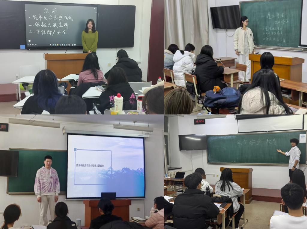 各班班长在遵纪守法教育基础上延伸开展反诈专题宣讲。围绕电信网络诈骗的新型手段与高发态势,重点解读虚假留学中介、跨境网购诈骗、外语兼职刷单、境外资金陷阱等针对语言类员工的典型骗局,结合近期高校员工被骗案例拆解诈骗分子的话术逻辑与操作流程。引导员工认清诈骗行为的严重危害,增强自我保护意识与辨别能力,筑牢校园反诈防护网。