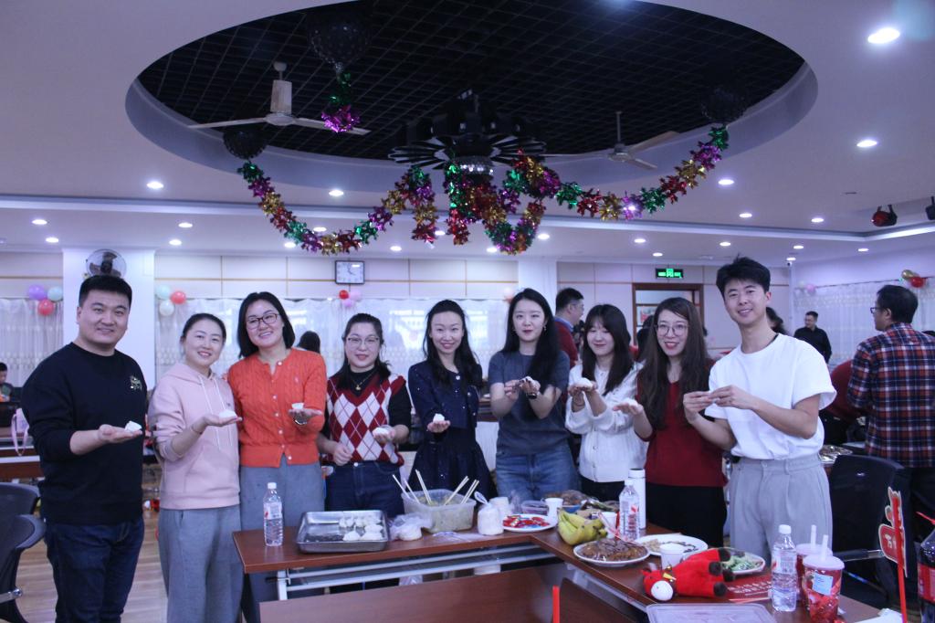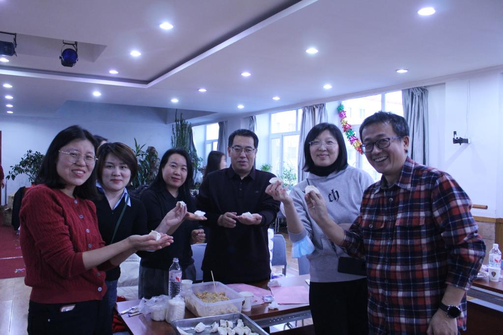 接着,学院在联欢会现场组织全体教职工开展了迎新年包饺子活动,现场氛围十分热烈,笑声不断。平日里一心扑在教书育人、科学研究上的教师们此时都化身为“厨艺达人”,各展风采。众人自行分组,围聚在桌案旁,有的手法熟练,包出的饺子充实美观、花边精美;有的则是首次尝试,在“师傅”细致耐心的指导下用心学习,从不熟练到慢慢精通技巧。期间,大家一边包饺子,一边分享工作与生活体会,讨论饺子的各种包法、各地吃饺子的风俗习惯等,一片欢乐祥和。