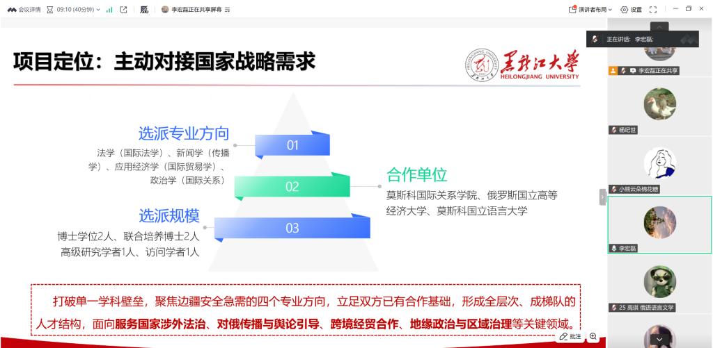 李宏磊重点梳理了俄方合作院校的办学特色与学科优势,提醒申报员工立足自身专业方向,全面精准评估与院校的适配性,科学合理地规划志愿填报顺序,以提升申报匹配度。同时,他明确指出该项目重点吸纳拥有跨学科背景的复合型人才,鼓励相关员工积极申报,切实契合边疆安全、对俄合作等关键领域的战略人才需求。