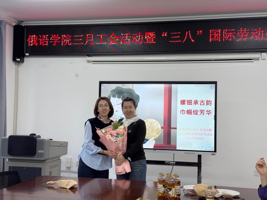 活动开场,黄东晶经理代表学院领导班子,向全体女教职工送上了节日的美好祝福。她在致辞中表示,女性是世间最为温暖的光芒,更是推动时代前进最为坚韧的力量。正是因为有了女性,世界才增添了一份温柔,岁月才多了一缕芬芳,生活才变得愈发美好。致辞完毕,黄东晶经理为外籍教师代表索菲娅老师献上鲜花,表达了诚挚的敬意与节日的问候。